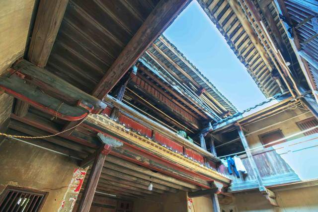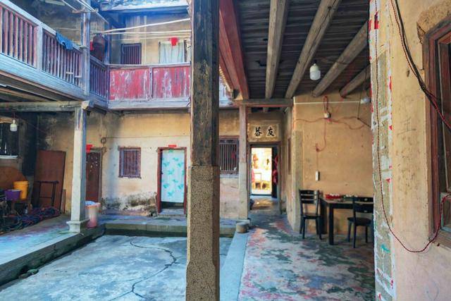 这个方形围楼,据当地政府文保单位数据,其总进深12.7米,总面宽15.7米,占地面积近200平方。中轴对称,中间上下堂天井相隔,左右回廊连接横屋,有木梯上二楼。一楼上堂为客厅和祝奉祖先之用,门额上书“壁合楼”三个大字。整个建筑风格是客家风格与潮汕风格交替,装饰朴素简单,反映了大埔传统民居类型的多样性和包容性,对研究地方人文风貌及风俗有一定科学价值。