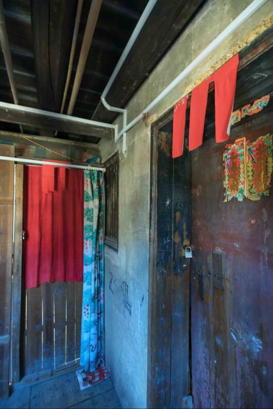 据壁合楼住户讲,门上这个红纸他们叫“利是”,通常贴5条寓意“五福临门”,也有贴3条寓意“生”,也有偷懒的只贴1条,纯粹讨个“利是”。“我们也比较懒,是一张红纸划开成5片,而不是单独贴5条……”壁合楼住户如是说。