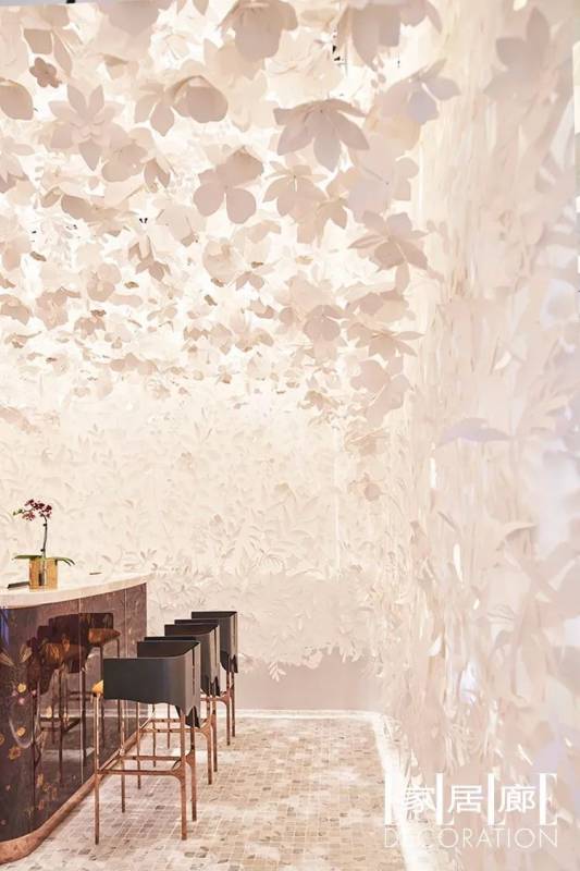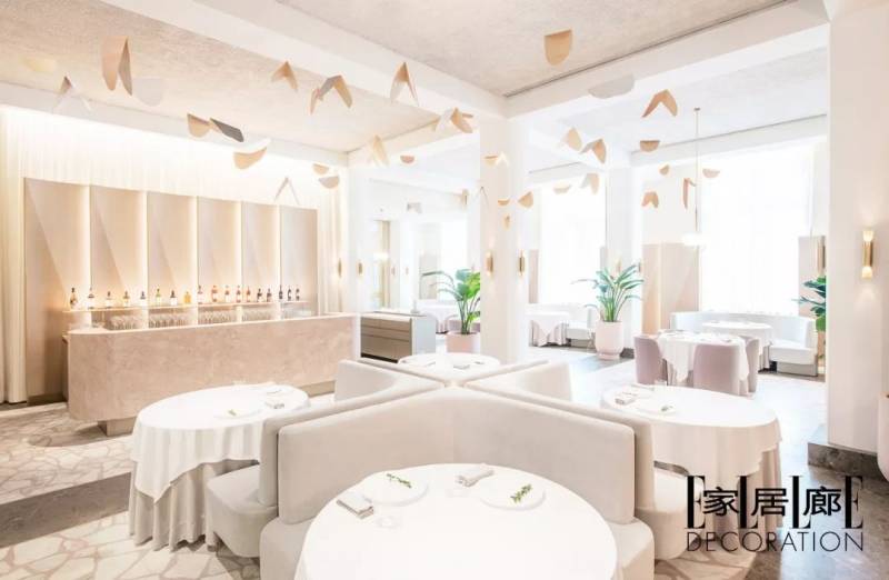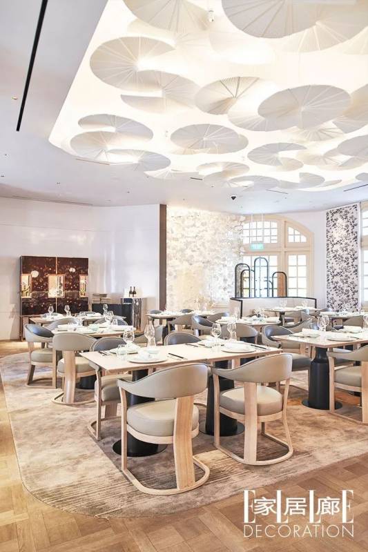 米其林三星的Odette餐厅今年刚刚荣膺“亚洲最佳50餐厅”榜首,“世界最佳50 餐厅”第18位,由法国厨Julien Royer主理,位于国立美术馆内,设计时主厨建议设计师选择粉色、淡金色这样柔和的色调和灰色天鹅绒这类优雅舒适的材料一起完成了餐厅的内饰,仿佛餐厅本身就静止在美术馆中。
