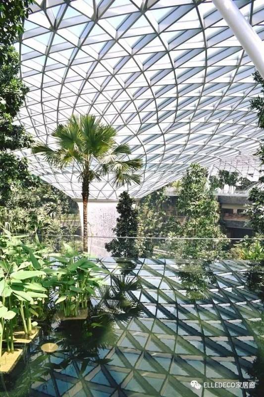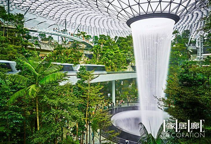 “星耀樟宜”坐落于新加坡樟宜机场第一航站楼前方,也是机场的核心位置,由 1、2、3 号候机楼均可通过连廊或小火车抵达这里。是一座聚集航空设施、购物休闲、住宿餐饮、游乐项目、景观花园等多功能于一体的综合性建筑。建筑由加拿大籍以色列裔设计师 Moshe Safdie 设计,以穹形玻璃屋顶和充满现代感的钢材外观设计为亮点,其中的“雨漩涡”室内瀑布格外壮观。这里大概是最让人不想离开的机场了。