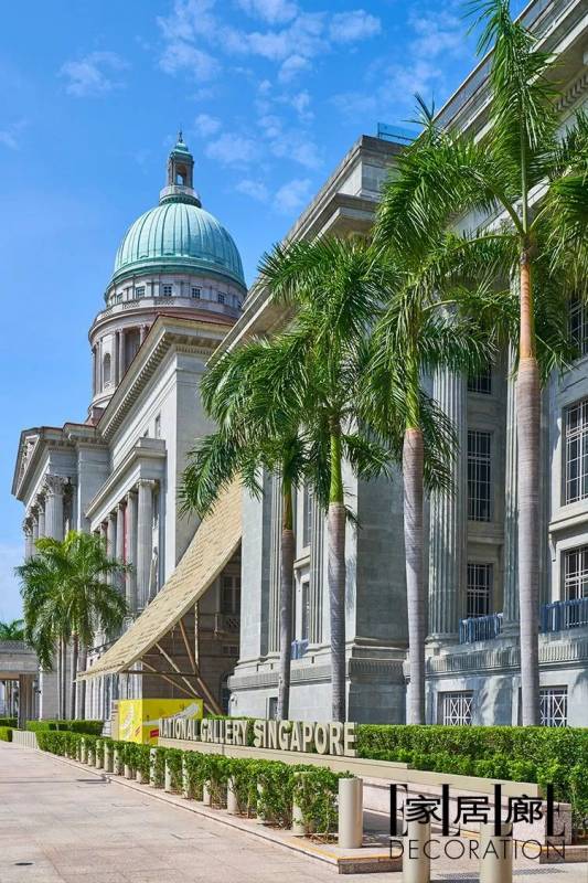新加坡国立美术馆由前市政厅和前最高法院两座历史建筑改建而成,采用了Studio Milou的设计,利用类似树枝的枝条支撑一座连接两座大厦的垂褶雨庇、以精细的金属网包覆大楼、连接地下室与上层的楼梯及利用太阳能提供能源供美术馆运作。