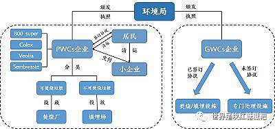 1.普通生活垃圾 新加坡居民的普通生活垃圾由居民自行投放,可通过分类垃圾桶和组屋垃圾管道两种途径投放垃圾。PWCs企业按服务区域设置分类垃圾桶,分为可回收垃圾桶和不可回收垃圾桶两类。新加坡针对不同场所的垃圾投放需求,设置了不同数量、样式的垃圾桶,具有较好的弹性。居民需将产生的普通生活垃圾按照分类标准,投入对应垃圾桶,垃圾桶附近设有监控,如居民未能按照分类标准进行投放,一经发现将面临严厉处罚。居住在组屋中的居民可以使用组屋垃圾管道,投放日常生活垃圾。 2.特殊垃圾 特殊垃圾包括新加坡政府规定的大件家具、建筑和装修垃圾、宠物尸体等,需要通过PWCs企业进行清运。若居民将特殊垃圾混入普通垃圾进行处理,将面临严厉的处罚。 3.工商业垃圾 PWCs企业提供的特殊垃圾清运服务只为居民提供服务,服务范围不包括工商业。新加坡工商业垃圾由GWCs企业处理,GWCs企业是新加坡环境局批准的一批持有执照的废物收运商,专门负责特殊垃圾的收运及处理。 二、中端 新加坡垃圾处理体系的中端为企业行为,由PWCs体系的四大运营商负责(800 Super、Colex、Veolia和SembWaste)。PWCs企业由新加坡环境局以公开招标方式任命,并按照地理区域划分服务范围。 在PWCs体系四大运营商以下,还有数量较多的小企业对可回收垃圾进行回收。小企业从居民处回收可回收垃圾,并出售给四大运营商。四大运营商从小企业处收购可回收垃圾,进行进一步的处理。政府任命的四大运营商及其下的众多小企业,共同负责新加坡全国的垃圾回收及清运,构成了垃圾处理体系的中端。