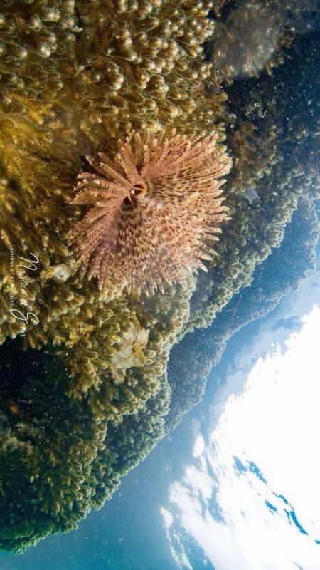 只见:一簇簇活力缤纷的珊瑚 和时不时游过的 玲珑可人的小海马