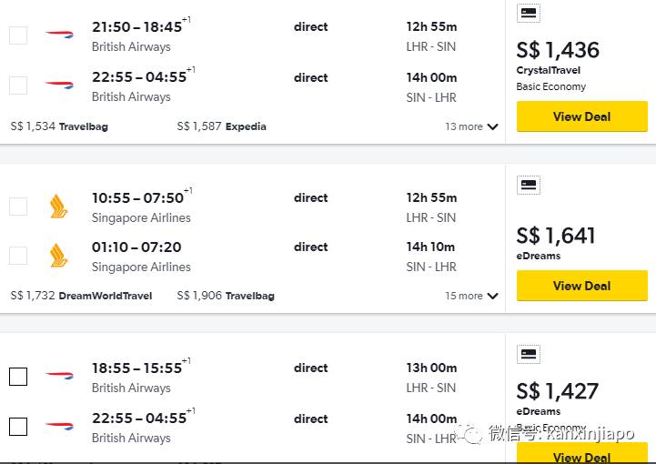 不过,在一家旅游网站上搜索,新航和其他航空公司的机票价格,并没有Josh说得那么夸张,至少英航和新航之间价格差距没有那么大.......