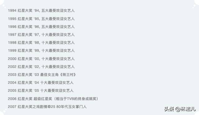 在那个没有整容没有精致化妆术的年代,陈莉萍靠着颜值和演技纵横娱乐圈,自《红星大奖》1994年开始举办以来,她几乎每年都获选为十大最受欢迎女艺人,人气杠杠的。