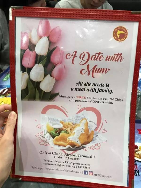 母亲节,一位单亲妈妈带孩子们去吃大餐。促销单上写道:只要和家人用餐时购买一道主食,母亲可以获得免费的炸鱼薯条。