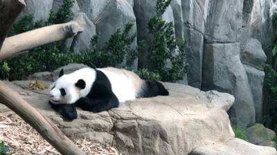 这不是静止画面 熊猫展区附近有一个玻璃房子,曼婷说那是为了培育熊猫继承人而设立的。 就是说如果两只熊猫产下宝贝,那在两个熊猫返回中国之时,宝贝就可以留在新加坡。