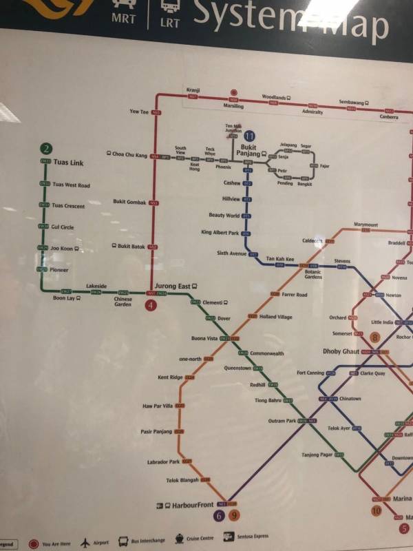 第一次坐新加坡的地铁,我们的出行时间是9:30,虽说是工作日的早上,地铁上却没什么人,甚至轻易能找到座位。 新加坡基建密度极高,地铁线路多,又施行错峰出行积分奖励,所以尽管人口密度大,但地铁真的不挤。