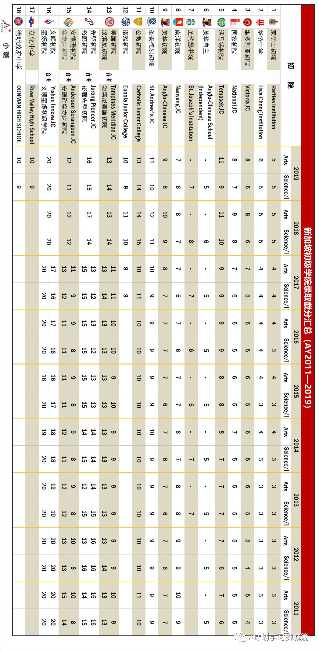 (本资 料数据来源新加坡各初级学院官网)