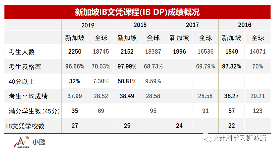 新加坡IB文凭课程整体成绩概况(2016-2019)