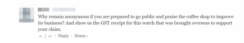 并且要求提供“GST小票”