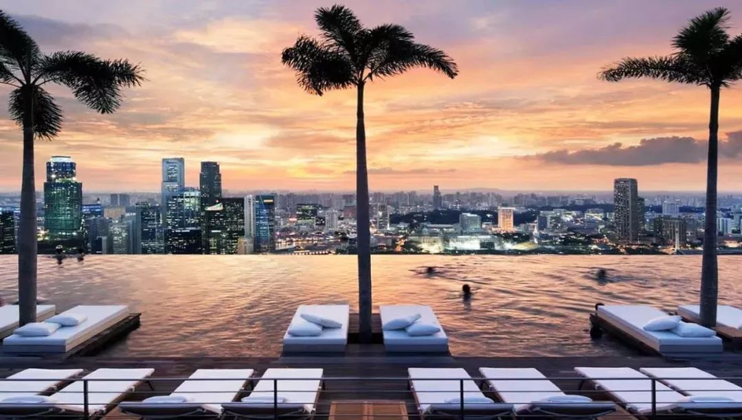 宾客们可以在游泳的同时,俯瞰新加坡的城市景观。世界上最昂贵的酒店这个室外泳池建在滨海湾金沙酒店57层高的塔楼顶层,是奥运会泳池长度的三倍,高度为650英尺(198米),是这一高度下世界上最大的室外泳池