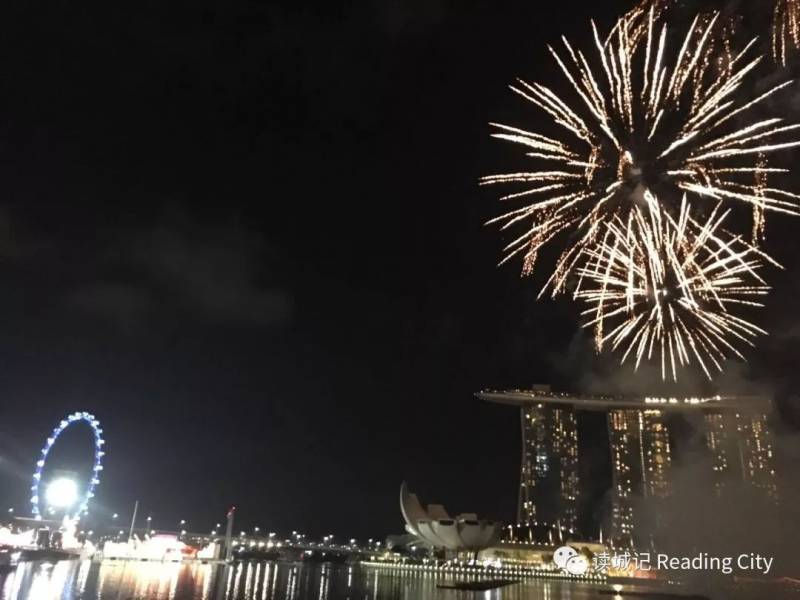 春节期间,政府毎年都在滨海湾举办大型的春到河畔活动,有各种美食和表演。这里有容纳几干人的看台,大年三十的演出一直持续到次日凌晨。从晚上十一点开始陆续燃放烟花。璀璨夺目的烟花时不时照亮夜空,照亮了海湾里游戈的游船,照亮了鱼尾狮 ,榴梿状的滨海艺术中心,热狗金沙,摩天轮以及金融区的摩天大楼,一切都是那么的美仑美奂。看了烟花秀,沿着新加坡河口的浮尔顿酒店(The Fullerton Hotel Singapore)来到新加坡河,你还可以欣赏到摩幻的音乐喷泉及灯光秀。