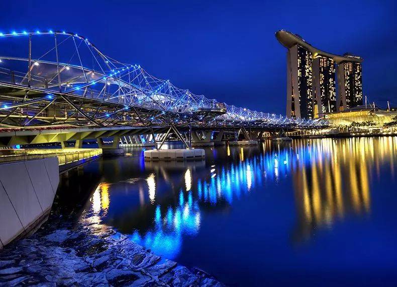 【双螺旋桥】连接滨海湾与滨海中心,是世界上首座曲线桥。大桥的五座观景台位置十分优越,随意登上其一,您便能纵览新加坡天际线的全景风光。