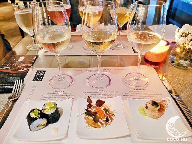 在几种不同酒类搭配小食的套餐中,必然点了香槟和起泡酒套餐,性价比超高,只要不到三百人民币。这样的无敌夜景,和家人小酌微醺一杯,让身心继续漂浮在新加坡的上空~