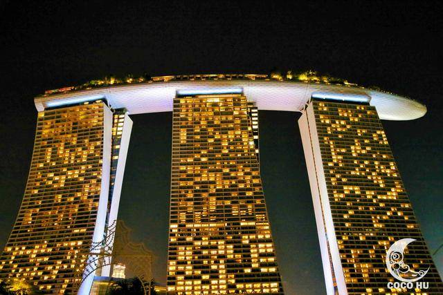 入住滨海湾金沙酒店,酒店、博物馆、花园、餐厅、购物等,有种让人忙不过来的充实感。酒店有三座主楼,平行拔地而起,耸入高空,顶端像停泊著一艘硕大的“帆船”。这艘“帆船”是长340米的露天平台,坐落在三座主体建筑的顶端,将三者连为一体,是一个视野无敌的空中花园。如果埃菲尔铁塔横躺下来,正好能放进屋顶花园里,而面积则是三个足球场大小。