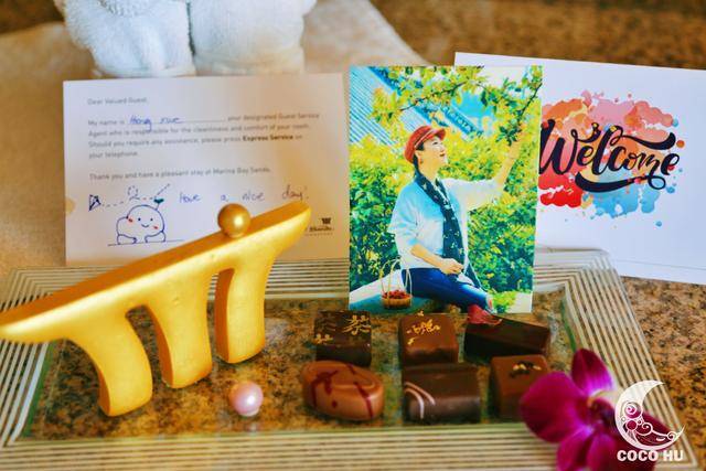 入住滨海湾金沙酒店,便能坐拥新加坡最无敌的美景。独占新加坡湾鳌头的阳台美景,有种君临城下的感觉。酒店的欢迎甜点,更是颇具心意地将住客的照片做成了巧克力甜点。