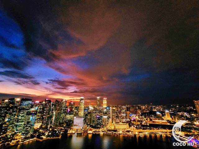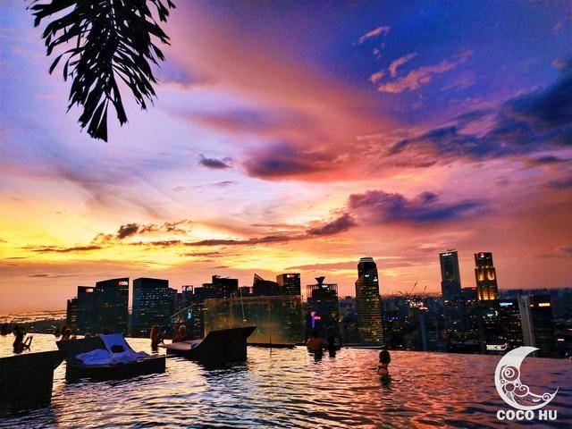 夕阳西下,远处的的天空上飘着一抹火红的晚霞。这是阴雨不断的一整天里,天空中唯一的亮色。水面被晚霞染红,在躺椅上,尽享漂浮在新加坡上空的梦幻~这是座名副其实的花园城市,却也是座充满童真和梦幻的Super crazy city~