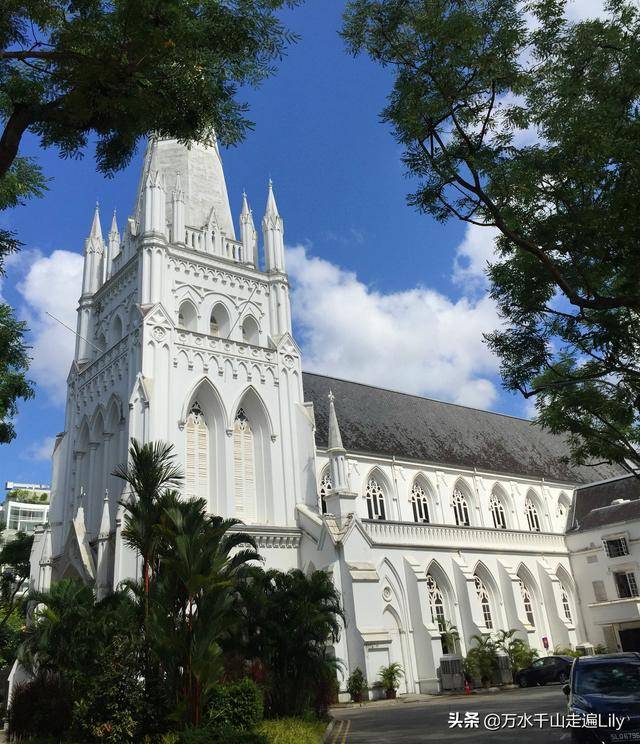 走过圣安德烈教堂的时候,一下子被它圣洁的白色吸引。这是一座外观特别漂亮的哥特式建筑,高耸的塔尖直插蓝天,高大雄伟。圣安德烈教堂是一座有100多年历史的基督教堂,也是新加坡最著名和最珍贵的建筑之一。它的外墙是一种特殊的石膏涂抹而成,这种石膏做法十分独特,需要先将贝壳磨成灰,加入蛋白和糖调成糊状,再加入浸泡的十分柔软的椰子壳增加它的稳固性,这样做出的石膏既美观又实用,不容易出现裂痕,而且洁白有光泽,怪不得白的如此细腻靓丽。