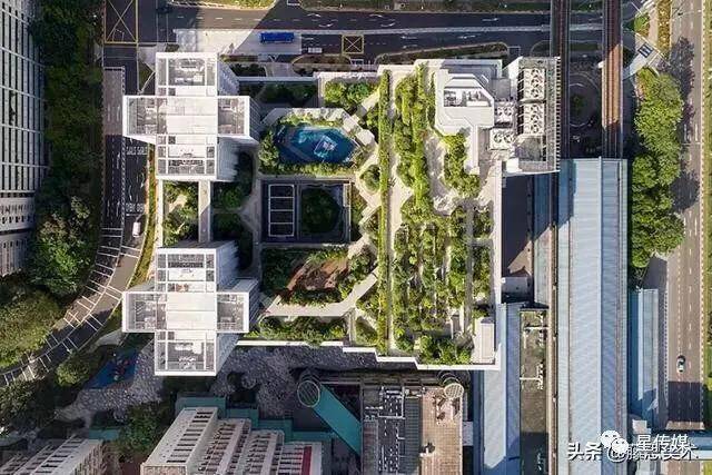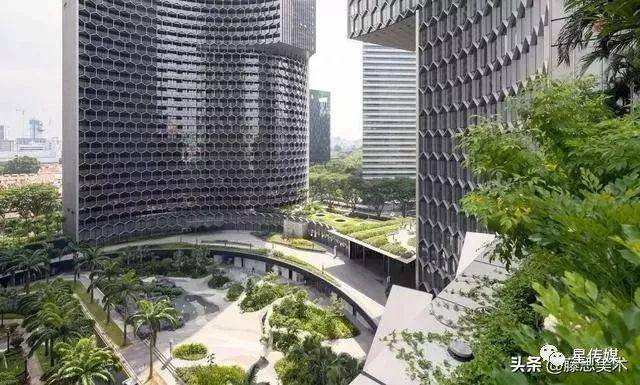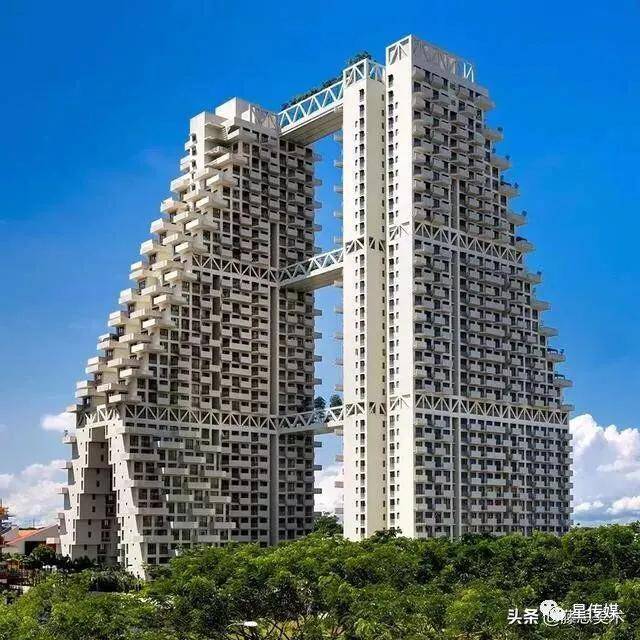 翠城新景(THE INTERLACE)The Interlace即交织的大楼。这一来自新加坡的备受瞩目的大型兼新型态的高尚公寓住宅综合体,设计师企图跳出新加坡传统的成片独立垂直塔楼住宅,探讨热带居住空间的其他可能性,提出一种处于自然环境之中并注重交流互动的热带生活方式。31个住宅单元,每个6层高,以六边形的格局相互联结叠加,构成6个大尺度的通透庭院,其交织的空间形成一个包括空中花园、私人和公共屋顶平台的垂直村庄。