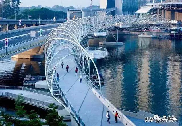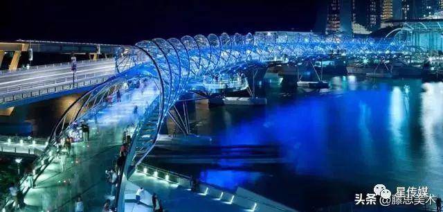 Helix Bridge 双螺旋桥新加坡双螺旋桥是世界上首座双螺旋人行桥,位于新加坡滨海湾,衔接滨海南和滨海中。其设计结构就像人体基因脱氧核糖核酸(DNA),由两条主钢索朝相反方向环绕而成,象征生命、延续、更新和成长,也反映新加坡人对滨海湾新市区的期待。