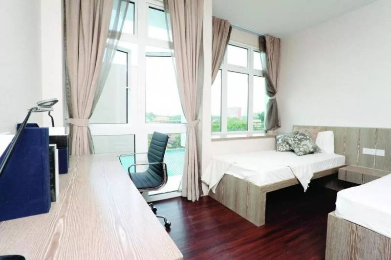 豪华国际学生公寓具有国际一流管理水准,提供学生吃、住、洗烫、学业监督以及医疗保健等服务,一般提供两人间或三人间,费用约为每月1500新元。