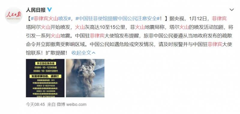 来源:微博 | 菲律宾塔阿尔火山爆发