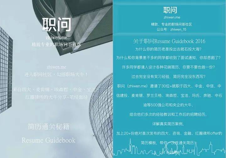 “职问”——由毕业于清华、北大、人大、史丹福等名校校友创办,总部位于北京,目前在全球范围内设立了上海、深圳、温哥华、纽约、伦敦等多个分区办公室。职问旗下新媒体已为超过100万名职场人士提供职场资讯,技能产品已实现5万名付费用户,求职辅导产品已帮助学员赢得来自摩根史坦利、高盛、麦肯锡、波士顿咨询、宝洁、德勤、金杜等名企的4000+份offer。