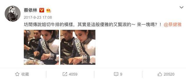 蔡依林不但承认了,还夸孙燕姿牌品非常好,这不就是在表明:“虽然我打牌很快,但孙燕姿还是愿意包容我。”好的,这颗“友情糖”我吃了!