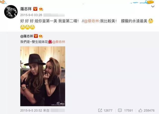 除了孙燕姿,蔡依林的另一个好“闺蜜”则是罗志祥。这两人也是一路相互扶持、相互依赖了近20年。只要翻翻两人的社交平台,就能时不时吃到两人发的“友情糖”,比如有事没事就妆扮成对方。