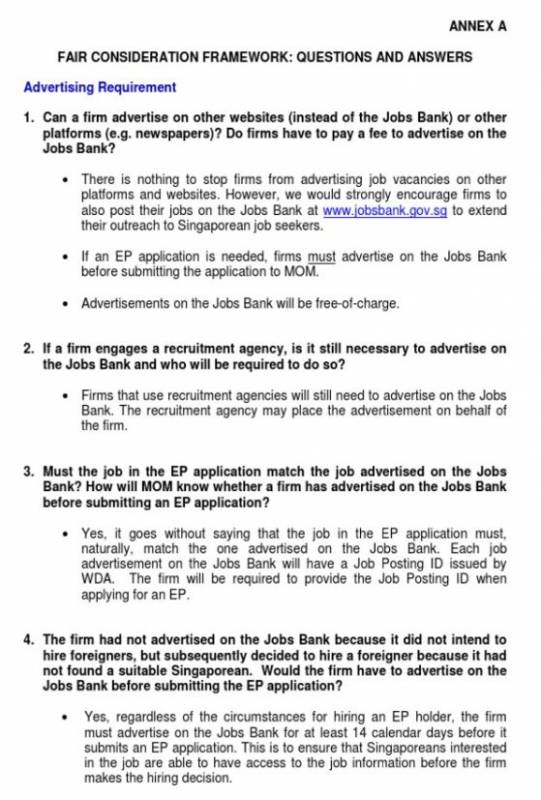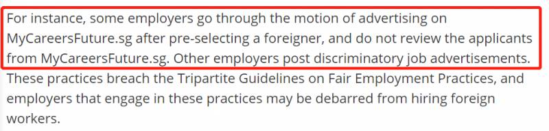 *例如有一些雇主在预选了外国人之后就在MyCareersFuture.sg上发布了,却没有从MyCareersFuture.sg上审查申请人。