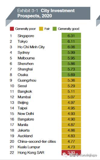 这份报告由城市土地学会发布,调查了亚太地区22个主要城市的投资前景。报告称,新加坡的排名上升受到区域地缘政治局势紧张影响,仅2019年上半年,新加坡的外国投资成交量总值便同比飙升73%。排名第二至第五的城市,分别是东京、胡志明市、雪梨和墨尔本。香港受动乱影响,从第14名直跌落至榜尾!