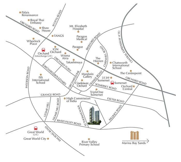 除了毗邻乌节路,公寓住户只需步行5-8分钟^即可到达未来的大世界地铁站(2021年竣工)和现有的索美塞地铁站。乘坐公共运输工具,每天去CBD的通勤时间在15分钟以内;开车的话,7-10分钟^就能到滨海金融中心。