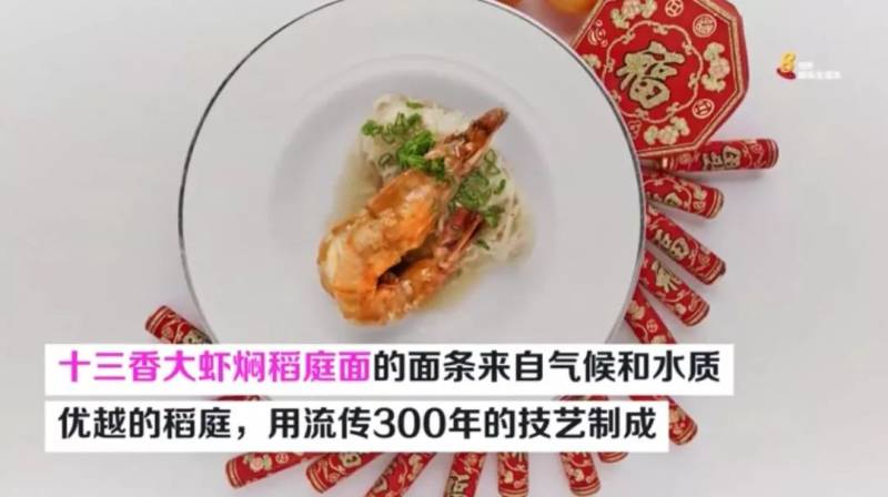 “十三香大虾焖稻庭面”是一道主菜,是十三种香料混合熬出了的高汤,再搭配大虾,吃起来特别的滑嫩清爽~