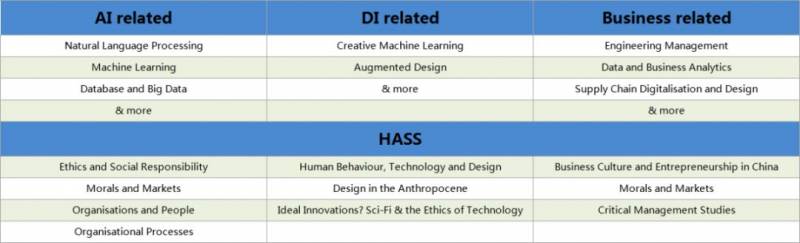 注:AI-人工智能 DI-设计创新 HASS-人文艺术与社会科学(资料来源:SUTD官网)