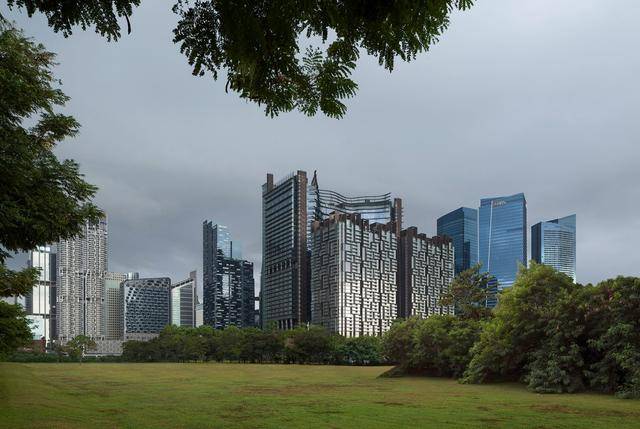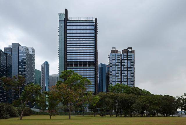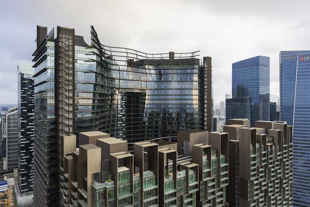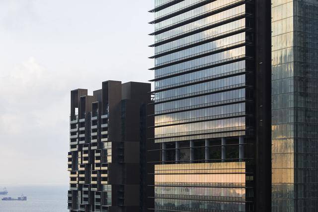 紧凑而高效的布局通过节能通风系统、高性能的外部遮阳设备以及能够降低辐射的玻璃窗得到进一步完善。大楼与新加坡六条地铁线中的四条线路直接相连,加上便捷的公交站、自行车停放设施和电动汽车充电站,私人交通工具的废弃排放量被大幅降低。建筑立面和室内空间皆选用了平静而质朴的古铜色,带来一种和谐舒适的氛围。