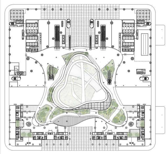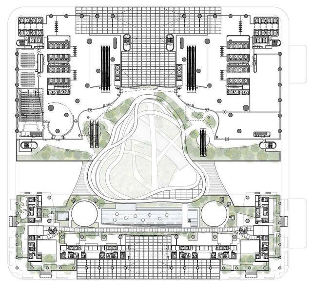 “绿色之心”在综合体的中央地带形成一个垂直的绿洲