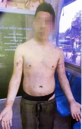 锺金泉在绑架期间遭虐待,全身伤痕累累。(网络照)