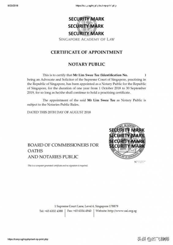 其次,在新加坡所有公证事务都由新加坡公证人完成,所有新加坡公证人都加入了新加坡法律学会,由新加坡法律学会正式任命的国际公证人(Notary Public),其认证资格及签章在新加坡法律学会备案留档。