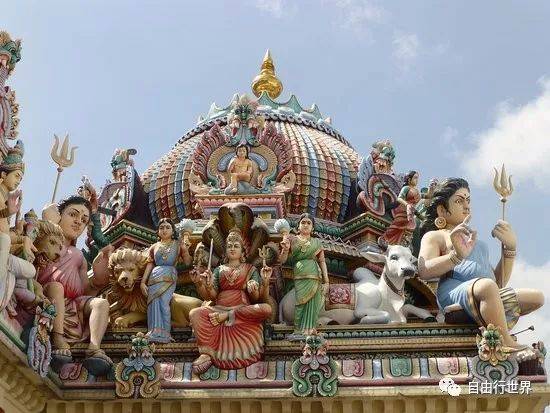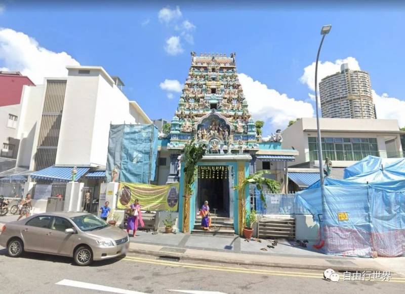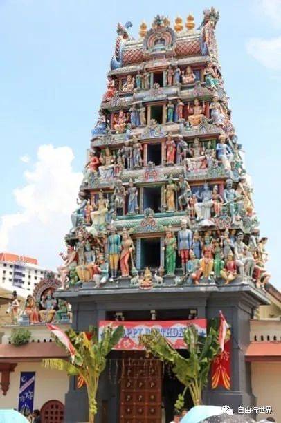 于是白杰带着阿昌逛起了牛车水,两人走了不远,阿昌问白杰“呢边呢个花花绿绿慨系乜?”白杰指著门上的彩色神像说“这是印度庙,叫Sri Layan Sithi Vinayagar Temple。牛车水虽然是中国城,但又有印度庙,又有清真寺,是新加坡多民族融合的典范。”