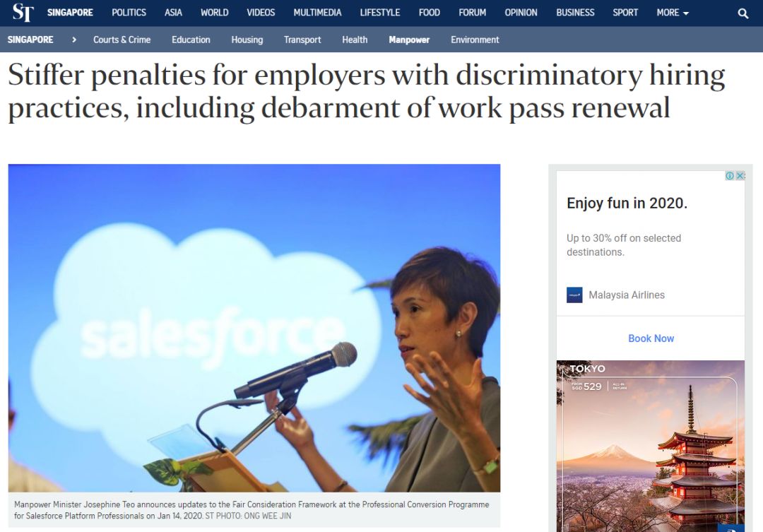 这次是关于申请EP准证的公平考量框架(Fair Consideration Framework)相关内容更新了针对违反规定的情况全面提高了行政处罚违规企业将被判刑和罚款!如果违反相关规定雇主将在12个月内无法申请新的EP工作准证对于更严重的情况禁止期限最长为24个月
