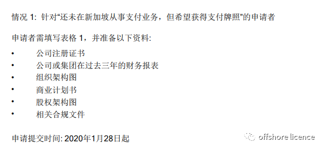 2019年12月18日,新加坡金融管理局(MAS)在其官网公布最新《支付服务商牌照申请指南》(“新指南”),并上传了4份牌照申请表格样本,其中包括:《表格 1-支付服务商牌照申请表》,《表格 2-支付服 务商牌照变更申请表》,《表格 3-支付服务商 首席执行官、董事、合伙人审批表》,以及《支付服务提供商指定时期牌照豁免通知表》。