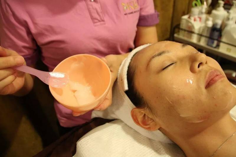 洁面之后去死皮、蒸脸、去黑头。按摩凝胶、精华液、滋润霜混合在一起在拨筋前涂上。会让拨筋有更好的效果。