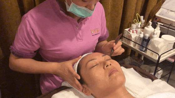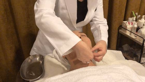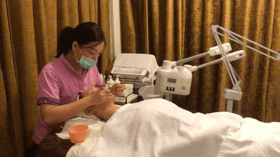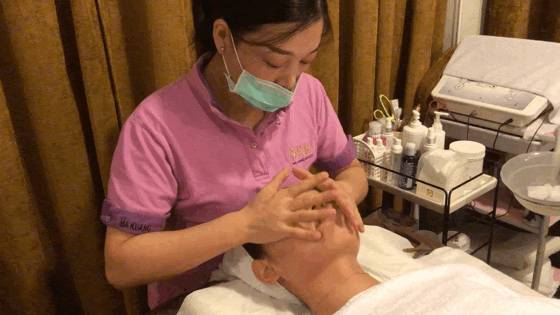 Sally觉得拨筋完了之后脸部微微发热,面部也有些发红。这就是开始有效果了。推拿师这时做一下面部按摩,安抚一下,皮肤能够舒缓下来。