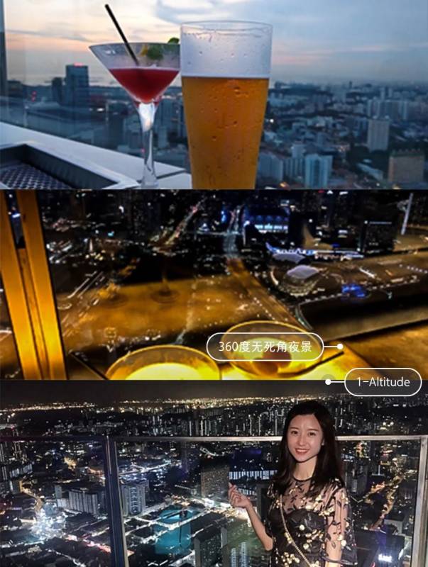 想找个地方俯瞰新加坡夜景却只知道金沙,那么不如来1-Altitude。这间高档酒吧曾斩获多个国际大奖,是360°无死角观赏繁华夜景的最佳选择。位于顶层的rooftop bar需要著休闲正装排队进入,每周三Lady night女士免费。作为世界上最高的屋顶酒吧,你可以从这里俯瞰鱼尾狮、滨海湾金沙酒店等多处新加坡著名地标,璀璨的霓虹灯和无与伦比的城市美景就在脚下,喝着新加坡特色鸡尾酒Singapore sling,让人体验到世界之巅的感觉。