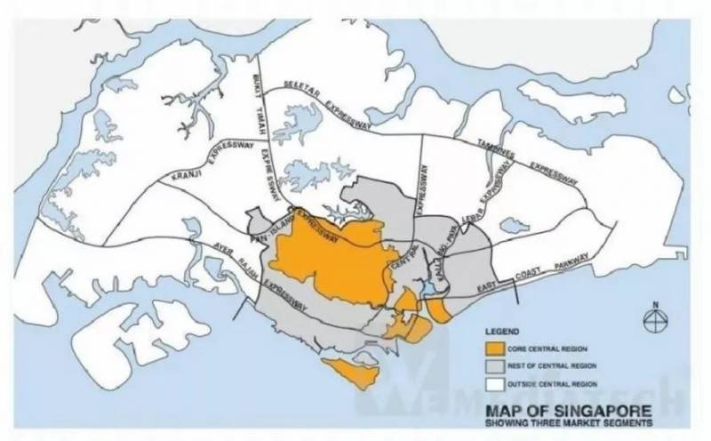 新加坡一共有28个邮区,在此基础上,又被划分为核心中央区(Core Central Region,简称CCR),其他中央区(Rest Of Central Region,简称RCR),和非中央区(Outside Central Region,简称OCR)。
