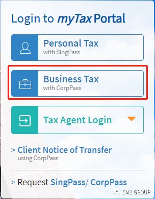2. 选择“组织/商业税务事项(Business Tax)”并以SingPass或税务局密码(IRAS PIN)登录