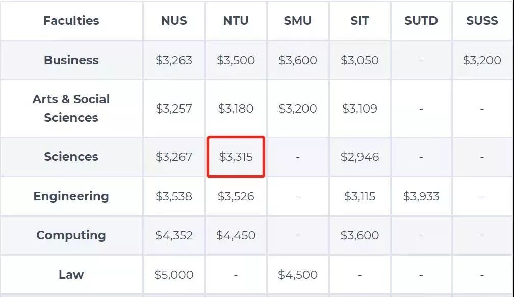 科学专业中,南洋理工大学(NTU)毕业生的起薪最高,他们的起薪是3,315新币(17,055人民币)。