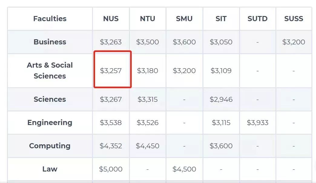 人文社科专业中,新加坡国立大学(NUS)毕业生的起薪最高,他们的起薪是3,257新币(16,757人民币)。