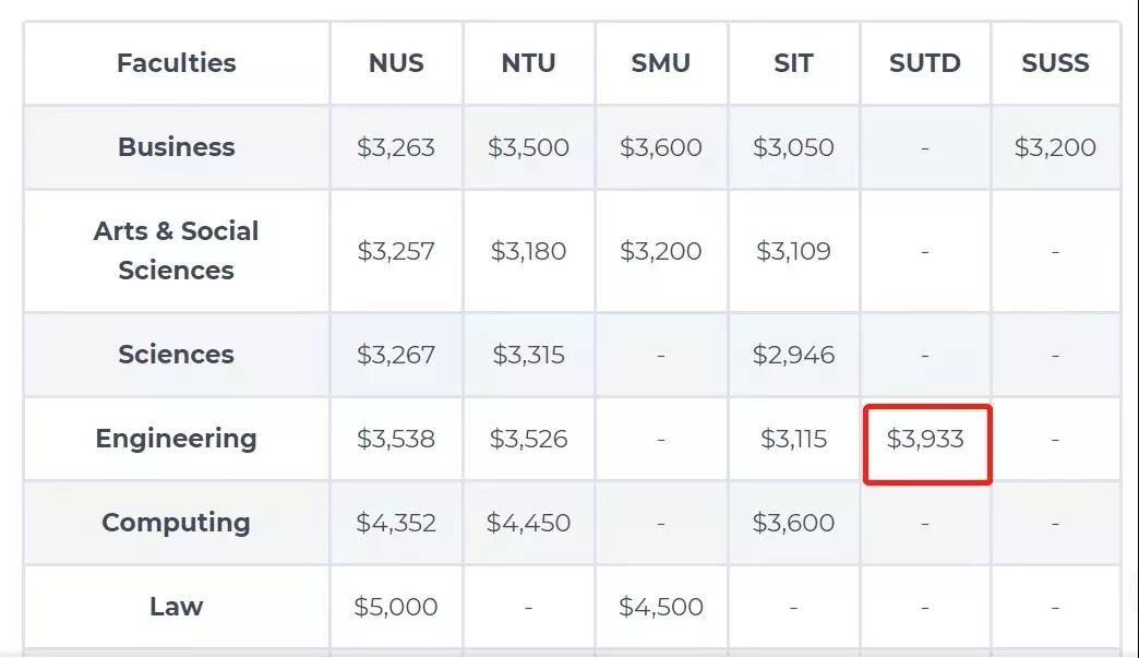 工程专业中,新加坡科技与设计大学(SUDT)毕业生的起薪最高,他们的起薪是3,933新币(20,235人民币)。